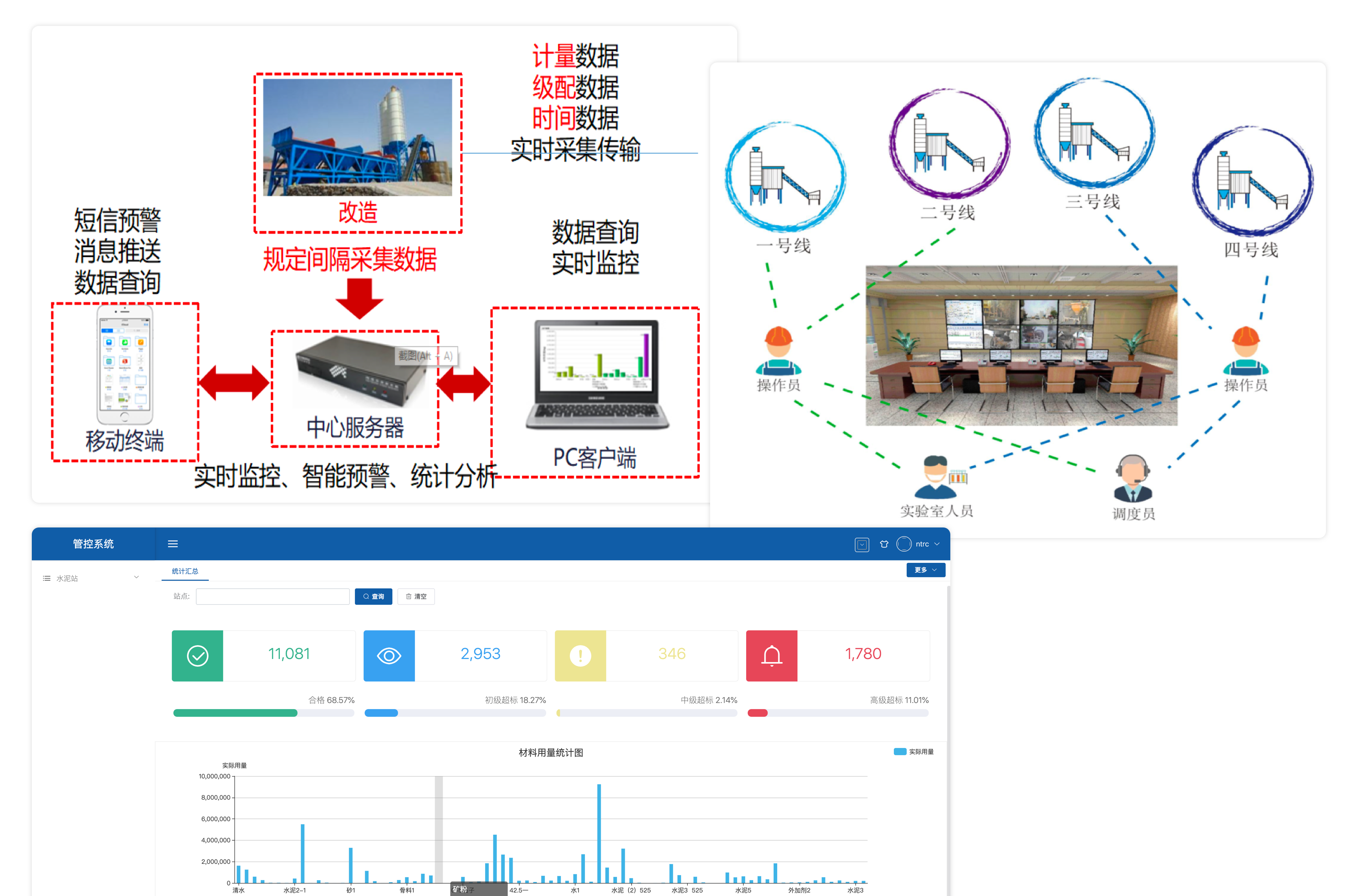 警,實(shí)時(shí)掌控混凝土、水穩(wěn)、瀝青材料的生產(chǎn)過(guò)程,確保出產(chǎn)材料的質(zhì)量達(dá)標(biāo)。